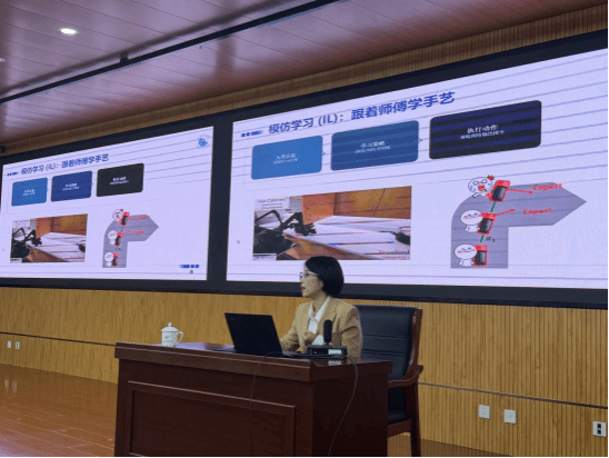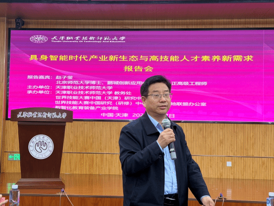 为抢抓具身智能产业发展新机遇,精准对接产业新生态对高技能人才的素养新要求,助力新时代高技能人才培养体系构建,4月7日,中心特邀鹏城实验室大模型创新应用中心主任赵子莹作题为“具身智能时代产业新生态与高技能人才素养新需求”的专题讲座。本次讲座由教务处、工程实训中心、世界技能大赛中国(天津)研究中心、世界技能大赛中国研究(研修)中心和集训基地联盟办公室、数智化教育装备产业学院联合承办。天津职业技术师范大学副校长王劲松,拓元智慧北京公司总经理夏超军出席讲座;校党委常委、副校长蔡玉俊主持本次讲座。教务处、工程实训中心(世界技能大赛中国(天津)研究中心)、数智化教育装备产业学院相关负责同志及各部门师生代表200余人到场聆听。
