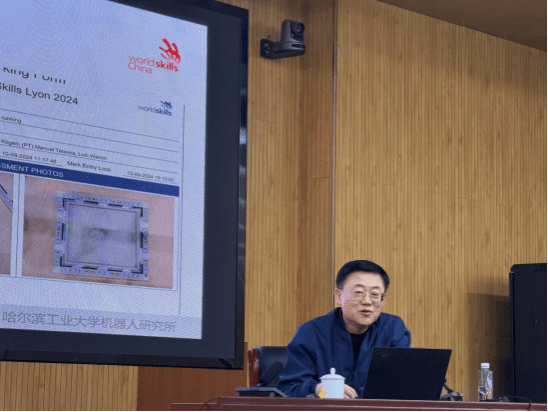 随后,李瑞峰教授围绕讲座主题展开精彩分享。他首先系统阐释了机器人系统集成技术的核心内涵、技术架构与应用场景,结合自身科研实践,生动解读了该技术在工业制造、智能服务等领域的应用价值。在此基础上,他全面分析了我国机器人系统集成技术的发展现状、优势领域与发展瓶颈,展望了行业未来发展趋势,强调了核心技术自主创新对于产业升级的重要意义。结合世赛集训工作需求,李瑞峰教授重点分享了世界技能大赛机器人系统集成项目的参赛规则、技术标准、备赛策略,以及我国参赛队伍的奋斗历程与辉煌成果。