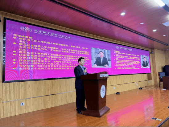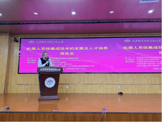 (通讯员 周广方)为深入贯彻落实技能人才培养相关要求,推广世界技能大赛标准与成果,帮助我校师生深入了解机器人技术前沿方向、精准把握行业发展脉搏,切实提高学校“工匠之师”培养质量,3月17日,由我校主办,教务处、世界技能大赛中国(天津)研究中心、世界技能大赛中国研究(研修)中心和集训基地联盟办公室联合承办的“机器人系统集成技术的发展及人才培养”专题讲座在师资培训楼二楼报告厅成功举办。本次讲座由哈尔滨工业大学李瑞峰教授担任主讲嘉宾,校党委常委、副校长蔡玉俊出席并主持,教务处、工程实训中心(世界技能大赛中国(天津)研究中心)相关负责同志及师生代表 100 余人参加。