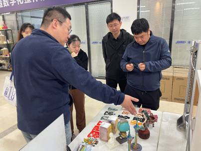 随后,前往天津博盛睿创科技有限公司开展党建共建交流座谈。公司负责人详细介绍了其在智能制造、3D打印、工业互联网等领域的研发成果与现实应用,教师们参观新型3D打印机设备,了解到3D打印在运动鞋、文创产品上的生产过程和投产前景。