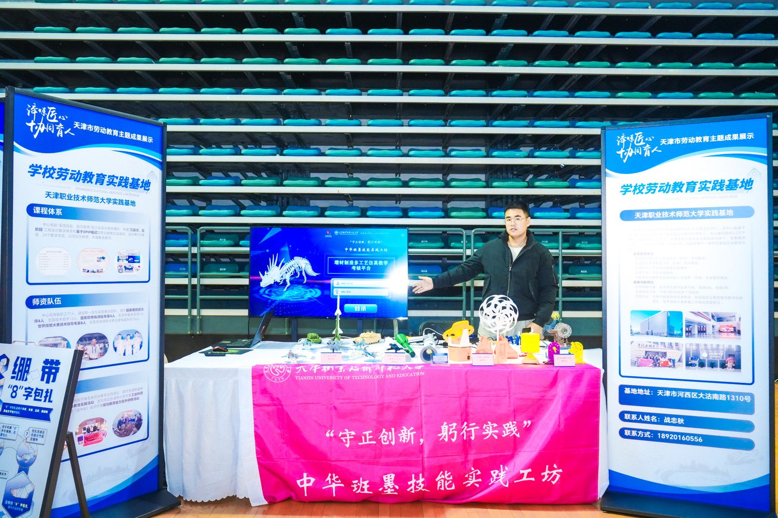 12月9日,一场以“淬炼匠心 协同育人”为主题的天津市劳动教育主题成果展示观摩活动,连同“同上一堂劳动教育课”2025年天津市劳模工匠进校园行动总结大会,在天津职业技术师范大学隆重举行。此次活动生动展示了我市大中小学劳动教育在价值引领与实践拓展方面取得的丰硕阶段性成果,呈现出一幅全景式、多层次、充满活力的天津劳动教育生态画卷。在成果展示现场,近60家市级劳动教育实践基地、全市16个区教育局及市直属学校精选的36个典型项目同台亮相,各展风采。